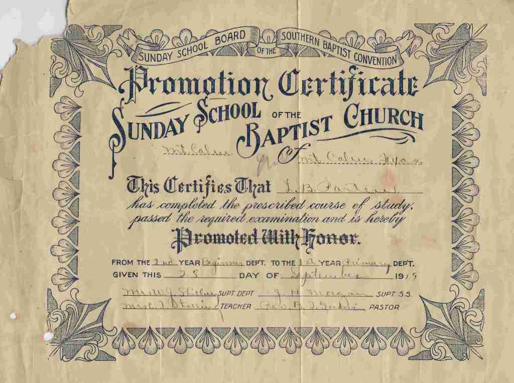 Lizzie’s Sunday School Certificate