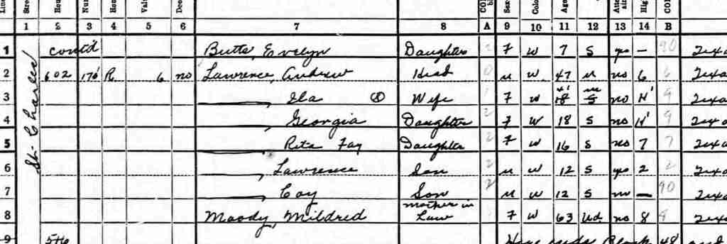 Listed as the Lawrence family instead of the Roundtree family. The census taker took my great-grandfather’s middle name as the surname and attached it to the entire family.