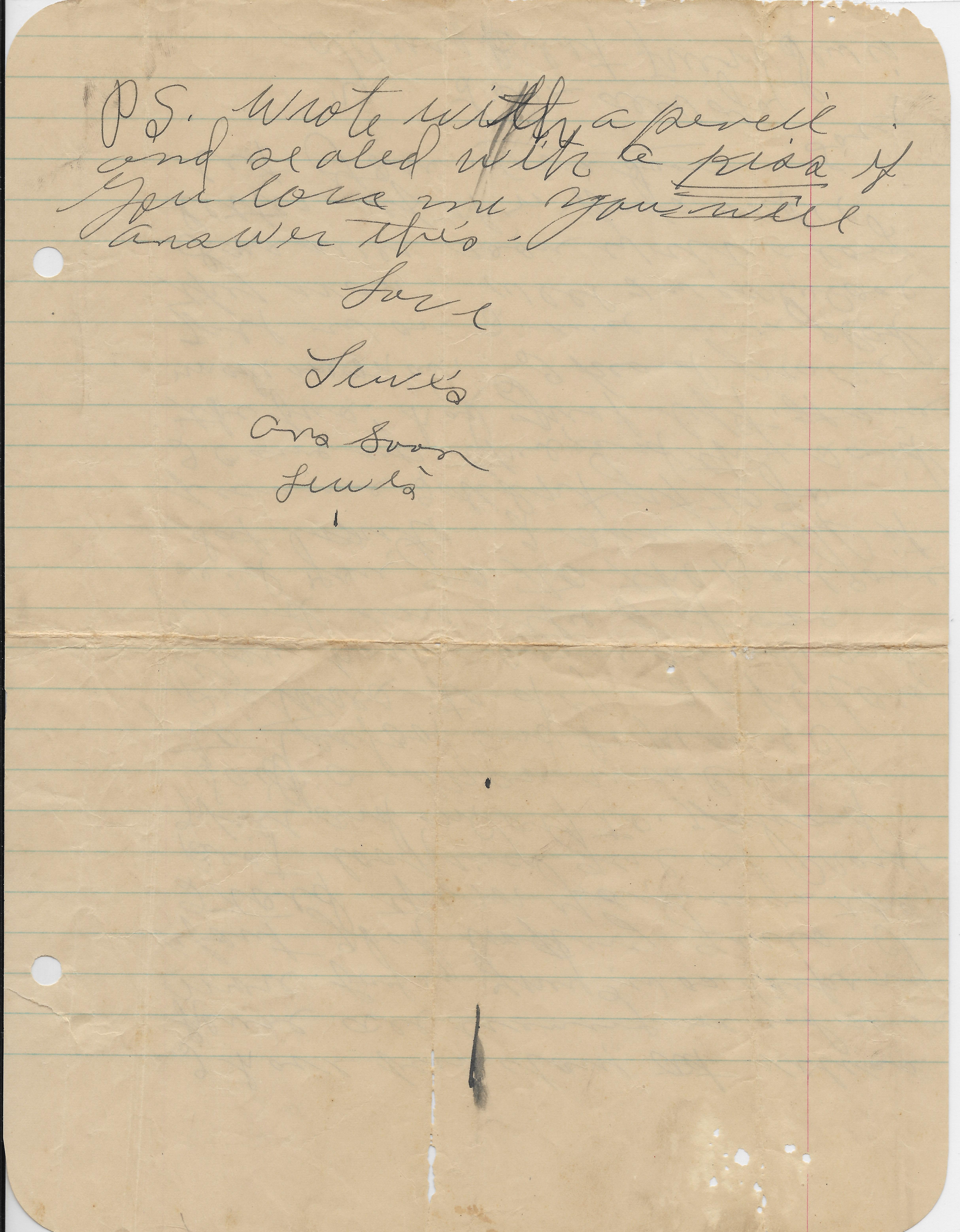 PS. Wrote with a pencil and sealed with a kiss
