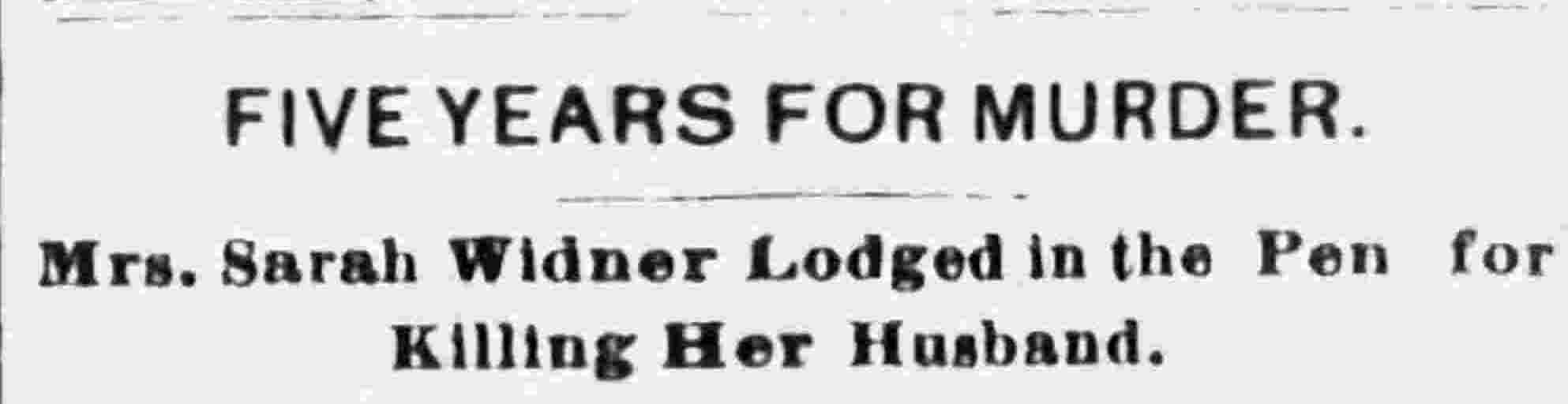 “Mrs. Sarah Widener, who was convicted at the recent term of the Pike county circuit court, of the murder of her husband, Isaac Widener and sentenced to five years imprisonment in the state penitentiary, was taken to Little Rock last week.”[19]