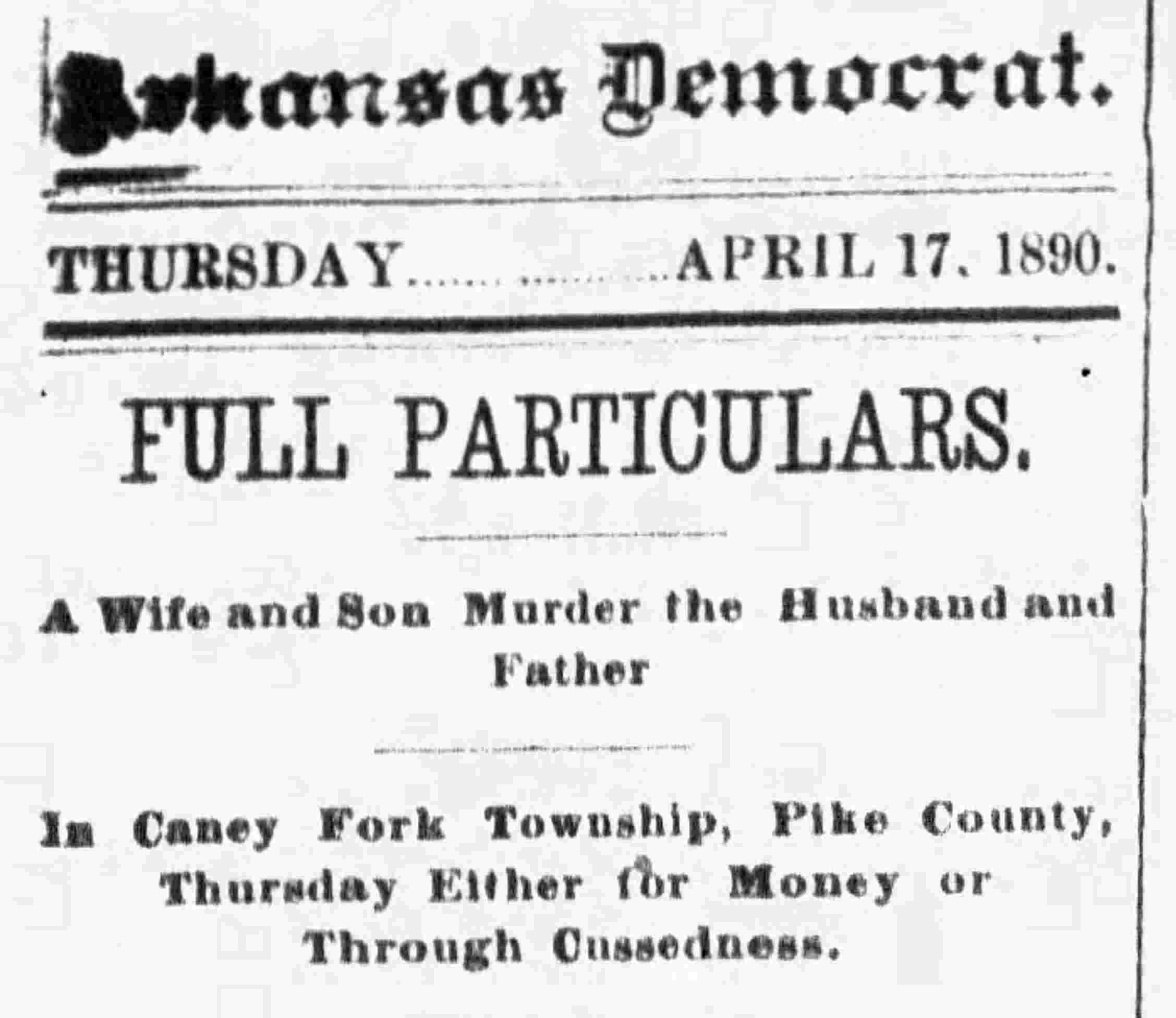 [1] Arkansas Democrat (Little Rock, Arkansas), 17 April 1890, pg. 6, imaged in Newspapers.com (https://www.newspapers.com/image/152498342) ; accessed 30 July 2019