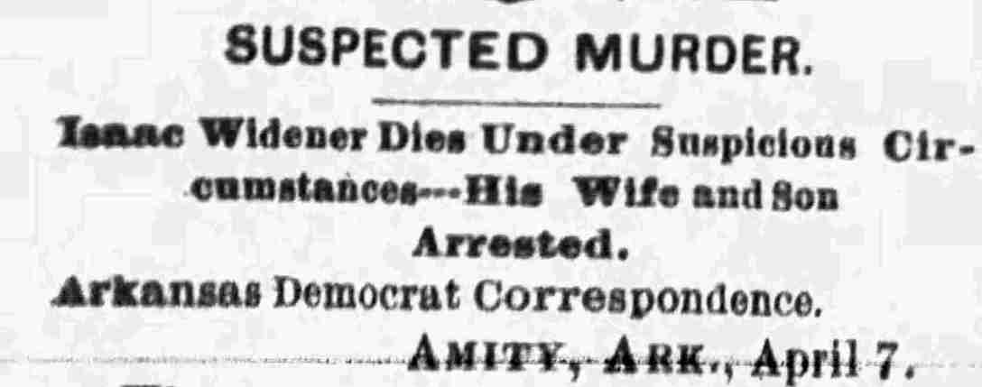 “Many of our readers will remember the murder of Isaac Widener, which his wife and son were convicted and sent to the penitentiary for a term of 21 years. Mrs. Widener died there while “Hon”, the son, served several years and was at last pardoned.