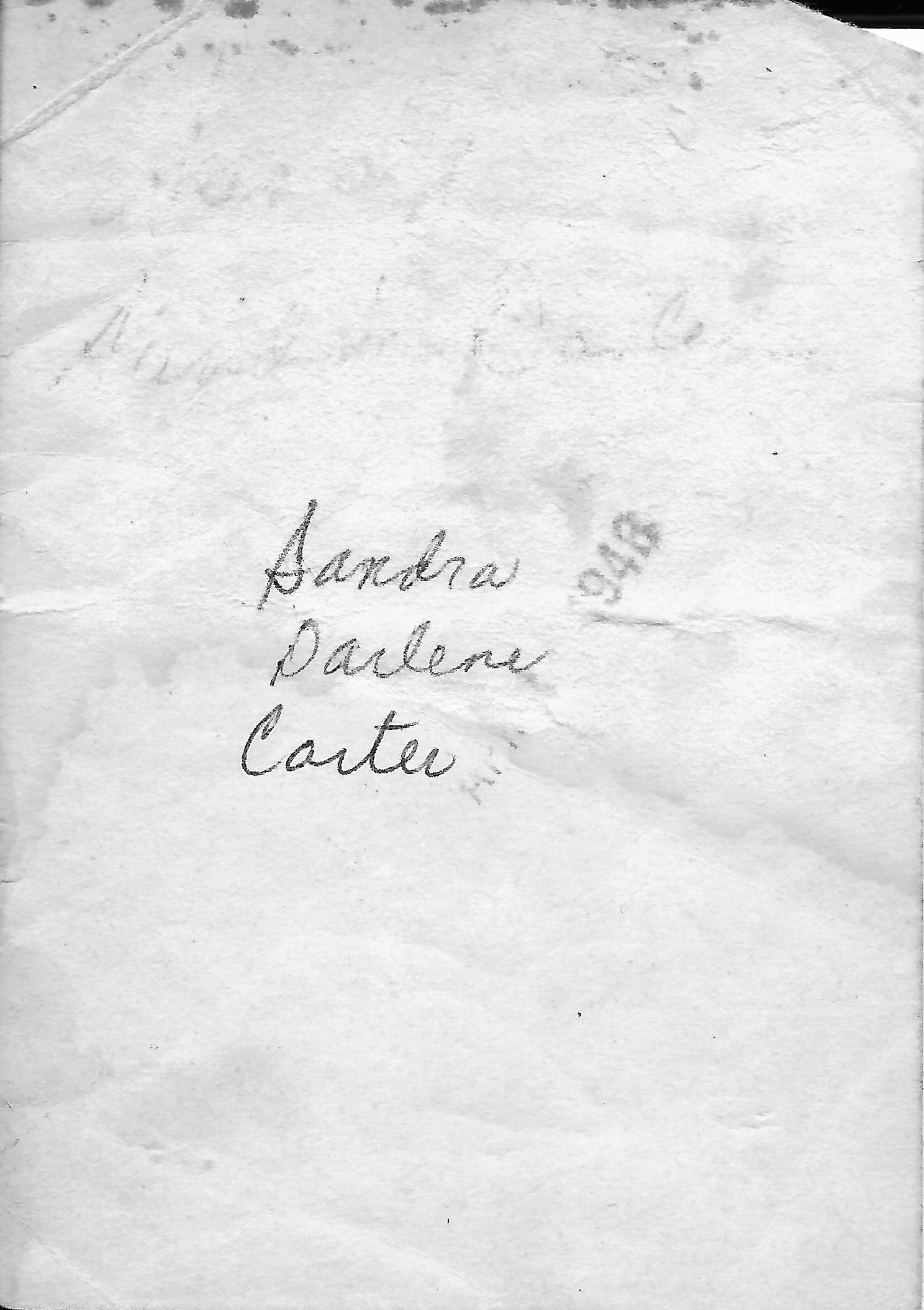In the meantime, I went to talk to my dad to ask him if he had ever heard anything about Mom’s birth father. I vaguely remember hearing that his name was Robert Carter, Howard Carter or maybe Herald?? We all knew that the last name was Carter because there was a picture of my mother when she was a small child. The name on the back said Sandra Darlene Carter. The photo was taken in 1948, which would have been before her stepfather adopted her.